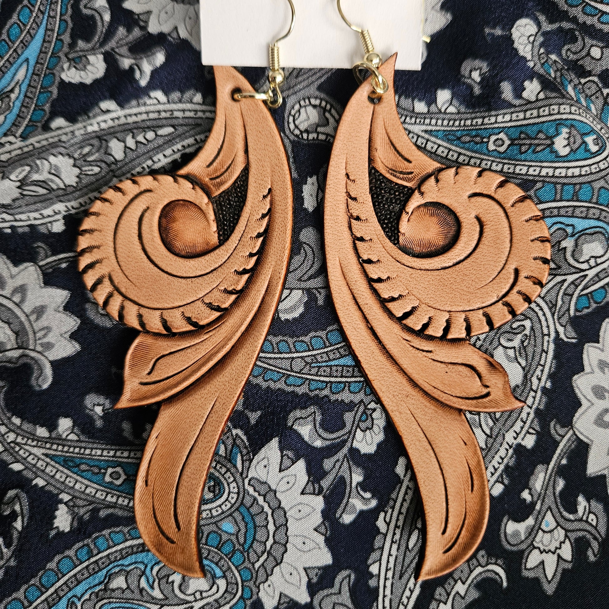 Hand tooled in Hermann Oak leather. A classic look now available to adorn your ears.