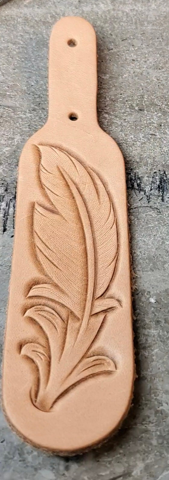 This pattern is for a 1.25"x3.75" Keychain. The pdf will be emailed to you upon payment. You can spice this pattern up with a little paint/dye OR line and sew!