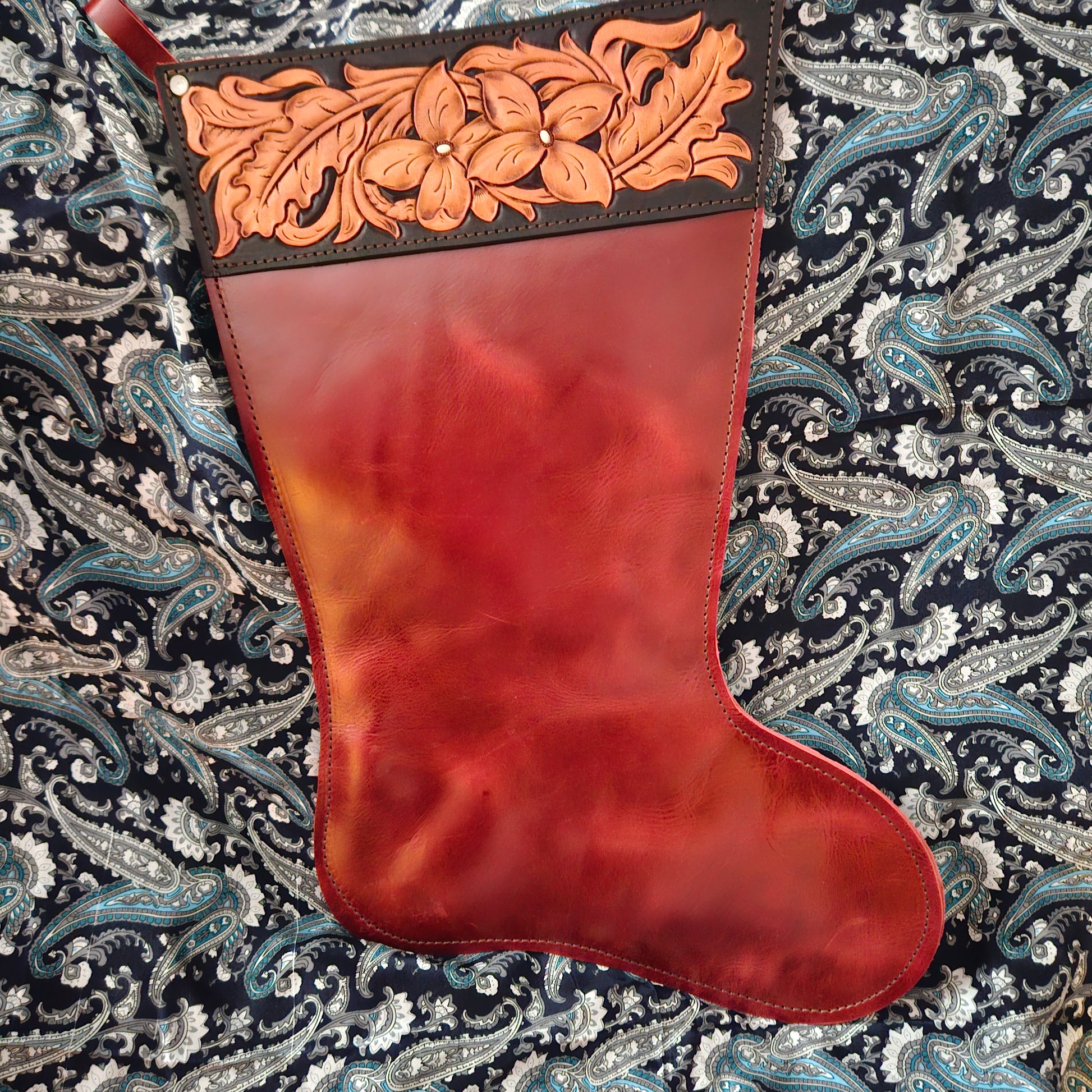 This pattern is for the stocking top seen in the picture. The pdf will be emailed to you upon payment. You can spice this pattern up with a little paint/dye. This pattern can also be used for other wide straps. The dimensions are 3.5"x10".
